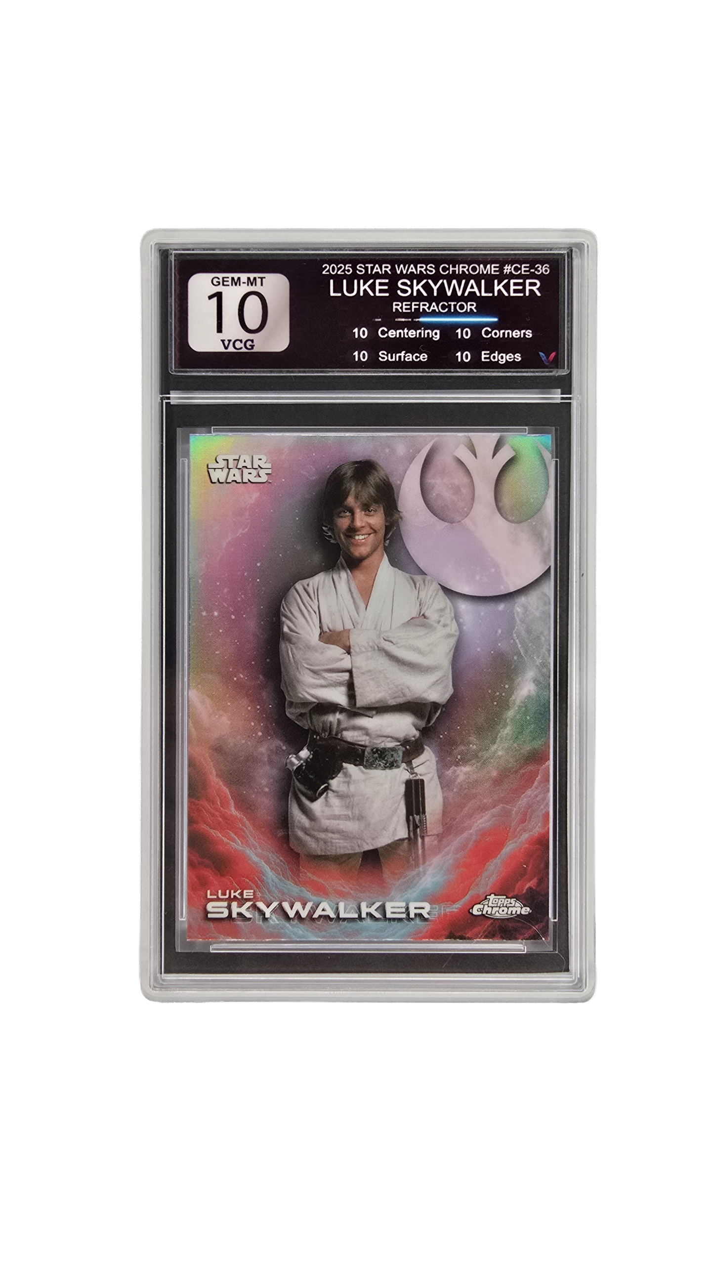 Each card is sealed in our tamper proof cases. Label is graded using Centering, Corners, Edges, and Surface.